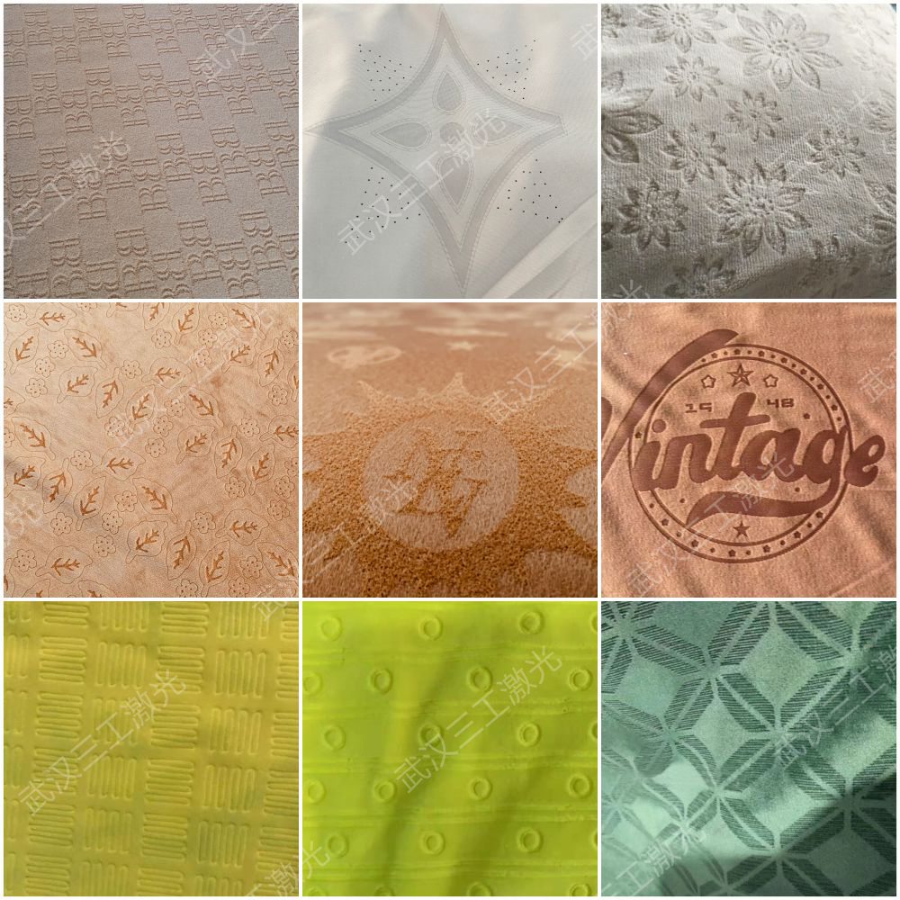 該設(shè)備是利用激光的熱效應(yīng),無接觸的對面料進(jìn)行燒灼刻蝕,并形成凸凹有致的花型圖案。