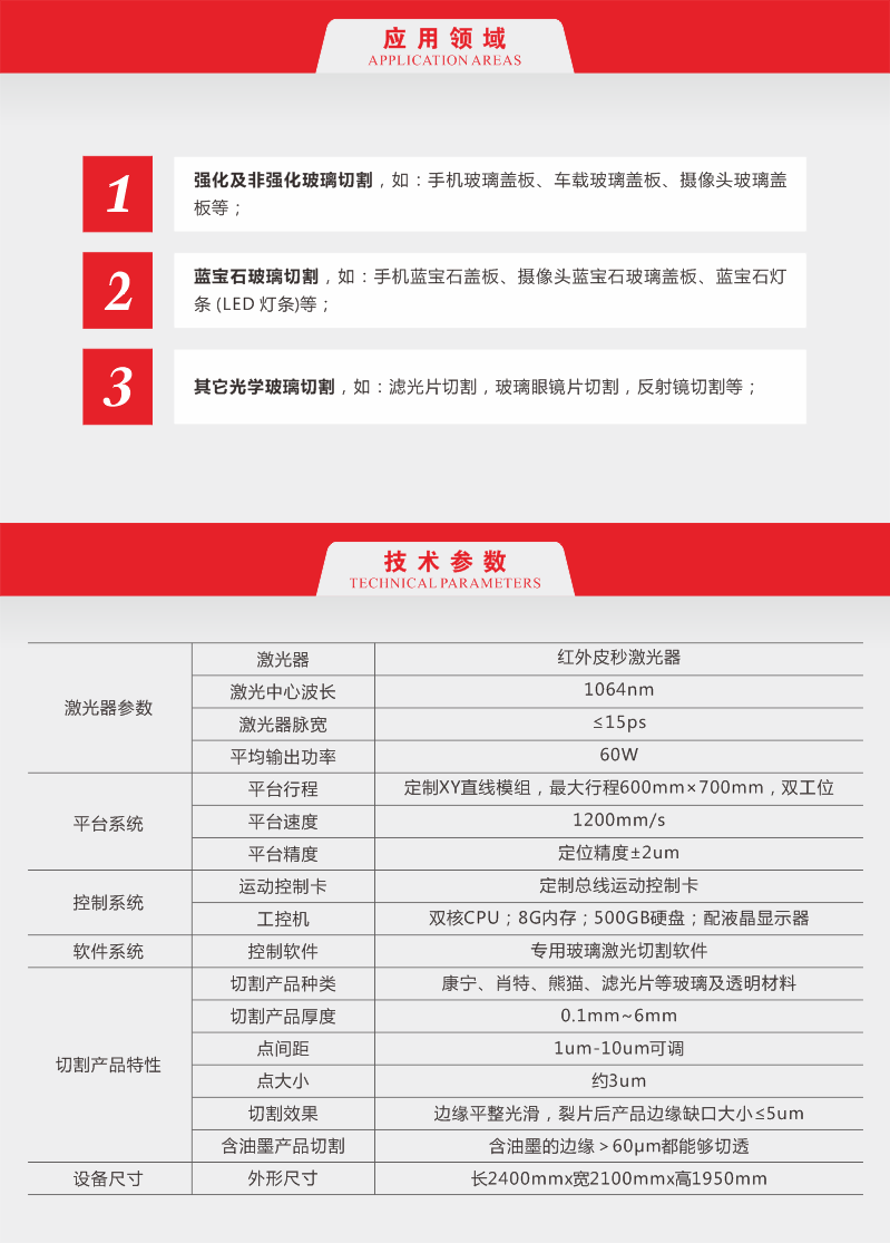 1、強(qiáng)化及非強(qiáng)化玻璃切割,如:手機(jī)玻璃蓋板、車載玻璃蓋板、攝像頭玻璃蓋板等;